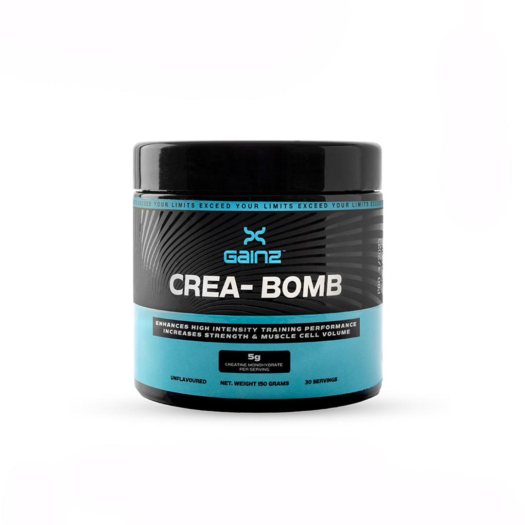Gainz Crea-bomb has 5g of pure creatine monohydrate which allows the body to produce more ATP, the key molecule your cells use for energy. This helps improve high intensity training performance. Creatine is also known to stimulate several key biological processes that lead to increased muscle growth and size.